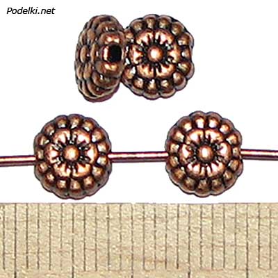 Металлическая бусина Таблетка с цветком 0007590 медный цвет 7x3 мм