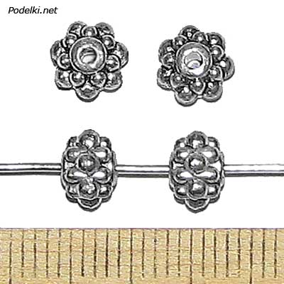 Металлическая бусина Цветок 0007594 серебряный цвет 7x4 мм