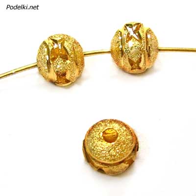Металлическая бусина Шарик сахарный со звездами 0007603 золотой цвет 8 мм