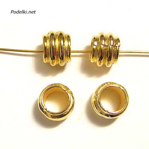 Металлическая бусина Цилиндр с полосками 0007618 золотой цвет 7х6 мм