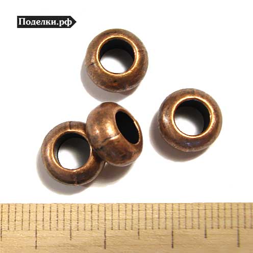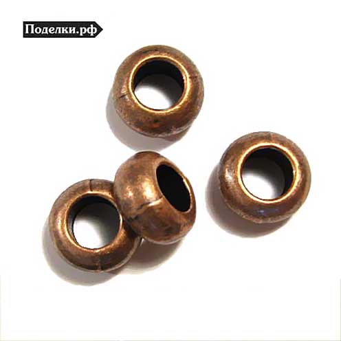 Металлическая бусина Бочонок простой 0007634 медный цвет 9х5 мм