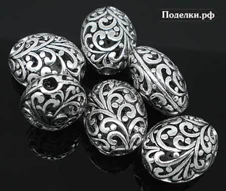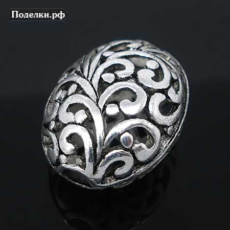 Металлическая бусина Овал Ветка полый 0007645 серебряный цвет 22x17x12 мм