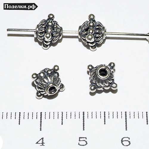 Бусина Бали Бутон ромбовидный 0007671 серебряный 9x7 мм
