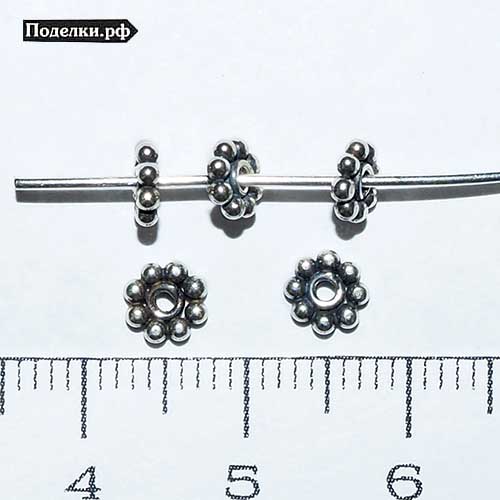 бусина бали колесико 0007678 серебряный 6x1.5 мм