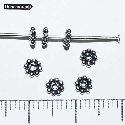 Бусина Бали Колесико мини 0007679 серебряный 4x1 мм