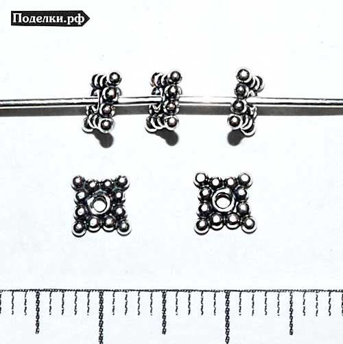 Бусина Бали Квадратик 0007680 серебряный 5x5x1 мм