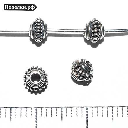 Бусина Бали Бутон ажурный мини 0007682 серебряный 4.5x4 мм