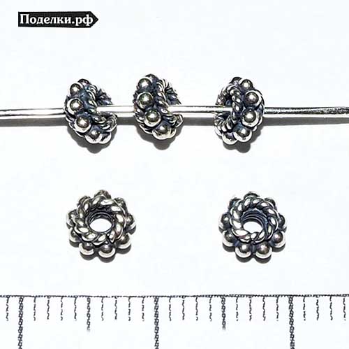 Бусина Бали Шайба мини 0007684 серебряный 5x3 мм