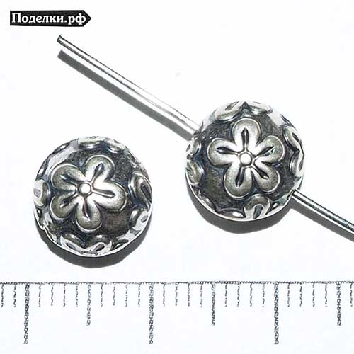 Бусина Бали Таблетка цветочная 0007688 серебряный 10x6 мм