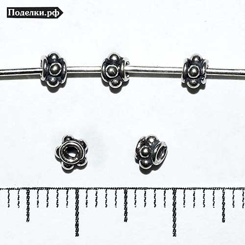 Бусина Бали Бутон мини 0007690 серебряный 4x3 мм