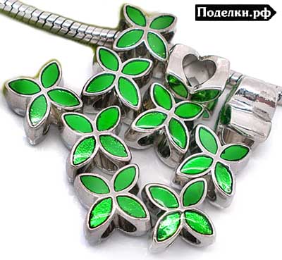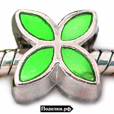 Металлическая бусина Пандора Клевер 0007700 серебряный цвет с зеленой эмалью 13x10 мм