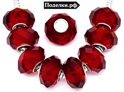 Стеклянная бусина Пандора Бутон граненый 0007701 рубиновый прозрачный цвет 14x9 мм