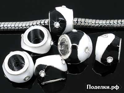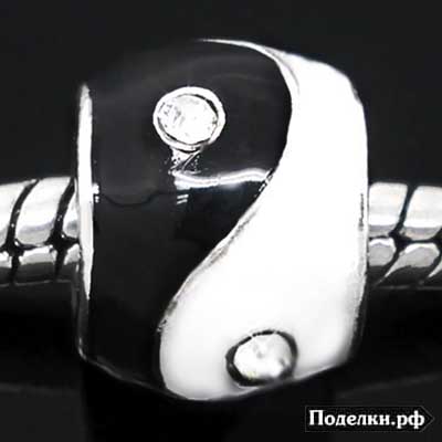 Металлическая бусина Пандора Инь-янь белая и черная эмаль 0007702 серебряный цвет с прозрачными стра