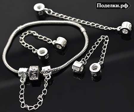 Цепь безопасности Пандора с цветами 0007727 серебряный цвет 90 мм