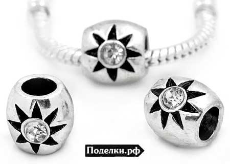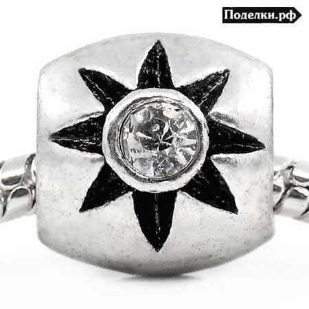 Металлическая бусина Пандора Звездная 0007733 серебряный цвет с прозрачными стразами 12x10 мм