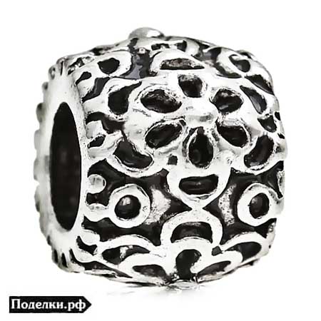 Металлическая бусина Пандора Бочонок Цветник 0007737 серебряный цвет 9x8 мм