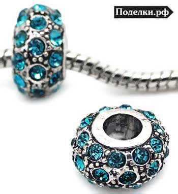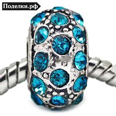 Металлическая бусина Пандора Эффектная 0007742 серебряный цвет с синими стразами 13x8 мм