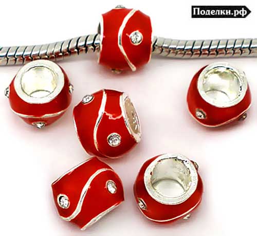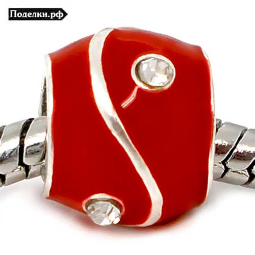 Металлическая бусина Пандора Инь-янь красная эмаль 0007748 серебряный цвет с прозрачными стразами 11