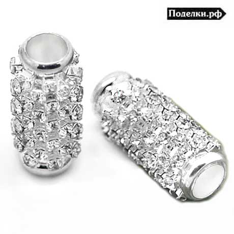 Металлическая бусина Пандора Трубочка 0007751 серебряный цвет с прозрачными стразами 23x10 мм