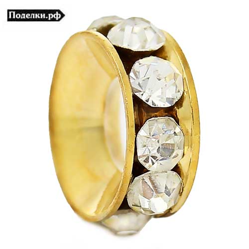 Металлическая бусина Пандора кольцо 0007757 золотой цвет с прозрачными стразами 10x5 мм