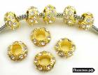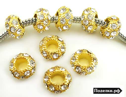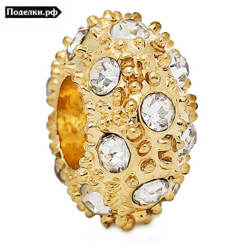 Металлическая бусина Пандора 0007758 золотой цвет со стразами 12x6 мм