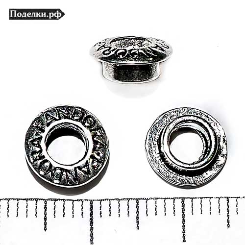 Металлический Люверс для бусин в стиле пандора 0007780 серебряный цвет с надписью Pandora 9x4 мм