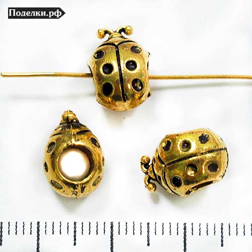 Металлическая бусина Пандора Божая Коровка 0007790 золотой цвет 12x8х8 мм