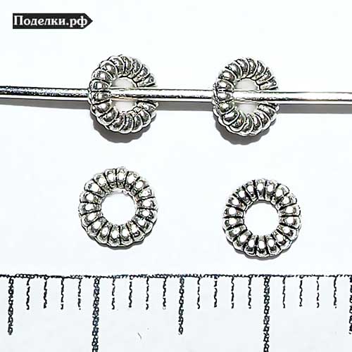 Металлическая бусина Колесико мини пружинка 0008009 серебряный цвет 5x1 мм
