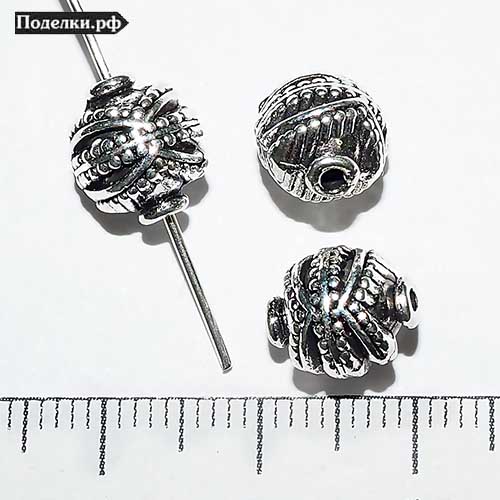Металлическая бусина Бутон Тыковка резная 0008014 серебряный цвет 10x9 мм