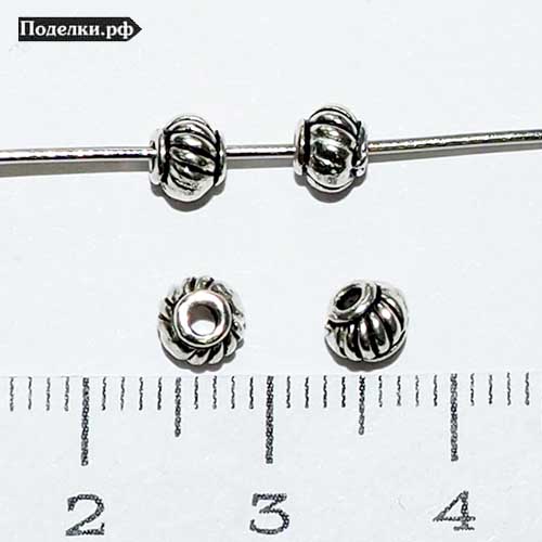 Металлическая бусина Бочонок выпуклый мини 0008024 серебряный цвет 5x4 мм
