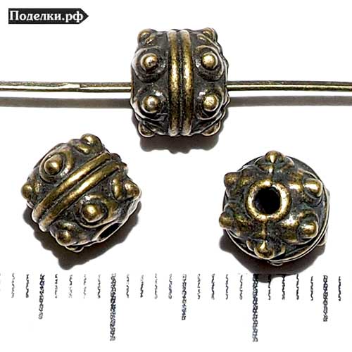 Металлическая бусина Бочонок узорный 0008028 бронзовый цвет 7x7 мм