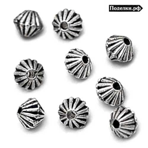 Металлическая бусина Биконус мини 0008038 серебряный цвет 4x4 мм