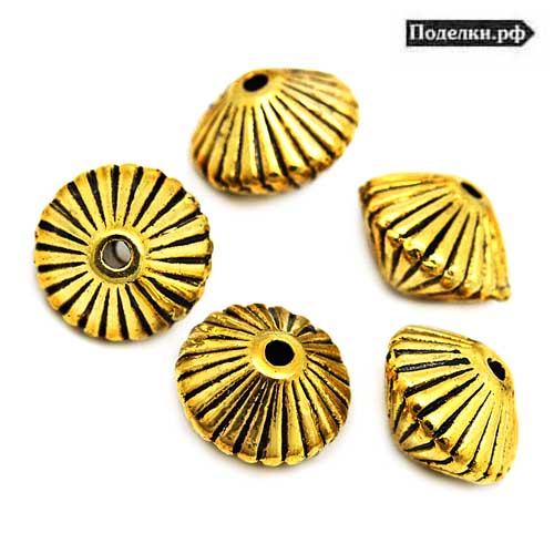 Металлическая бусина Биконус 0008044 золотой цвет 8x5 мм