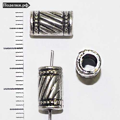Металлическая бусина цилиндр полосы 0008057 серебряный цвет 10x6 мм