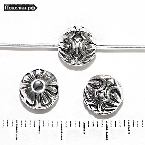 Металлическая бусина Шарик с цветком 0008062 серебряный цвет 8 мм