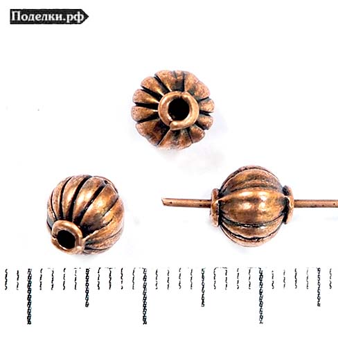 Металлическая бусина Бутон простой 0008069 медный цвет 7x7 мм