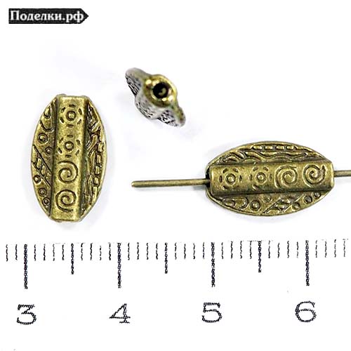 Металлическая бусина Овал плоский с узором 0008071 бронзовый цвет 14x8 мм