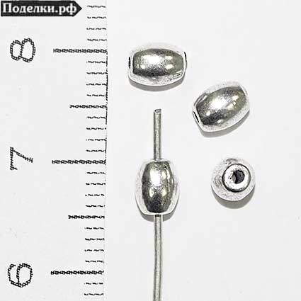 Металлическая бусина Овал мини простой 0008081 серебряный цвет 6x4 мм