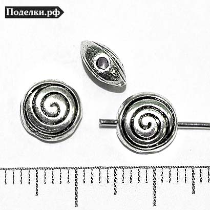 Металлическая бусина Улитка средняя 0008098 серебряный цвет 8 мм
