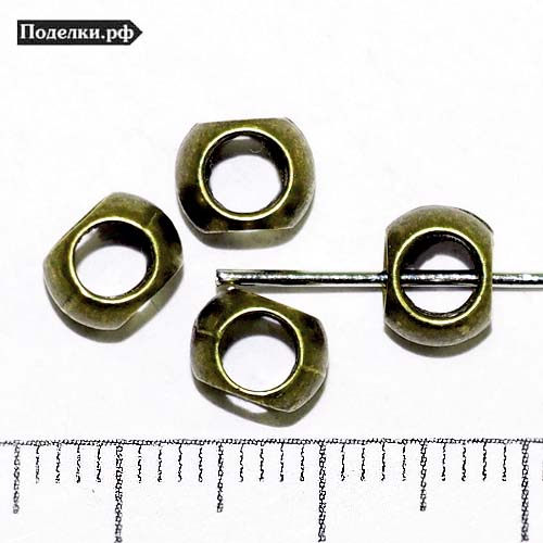 Металлическая бусина Шарик с четырьмя отверстиями 0008099 бронзовый цвет 7 мм