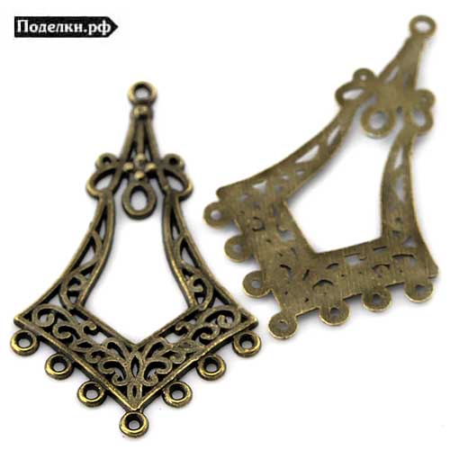 коннектор ромб узорный 0008133 бронзовый цвет 44x27 мм