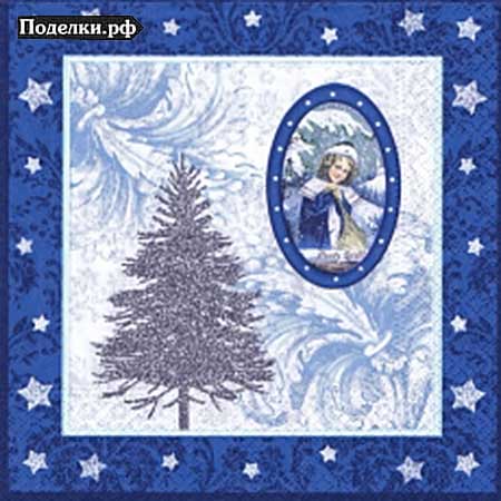 Салфетка Зимний винтаж голубая 0008208 трехслойная 33x33 см