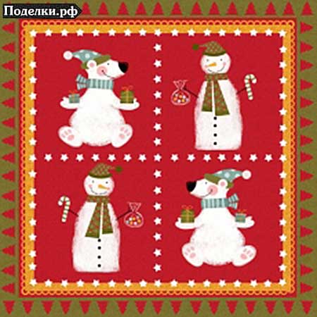 Салфетка Мишка и снеговик 0008232 трехслойная 33x33 см