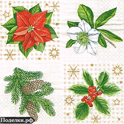 Салфетка Новогодние растения 0008254 трехслойная 33x33 см