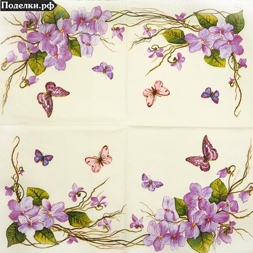 Салфетка Фиалки 0008276 трехслойная 33x33 см