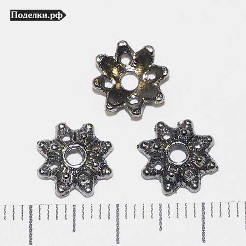 Крепежная шапочка литая Цветок Звездочка 0008345 цвет темное серебро 10x3 мм
