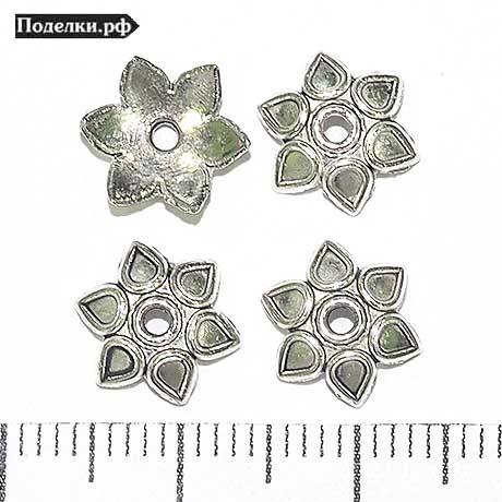 Крепежная шапочка литая Цветок шестилистный 0008348 серебряный цвет 10x3 мм