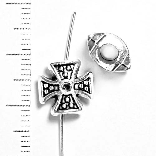 Металлическая бусина Крест 0007694 серебряный цвет 13x11x3 мм