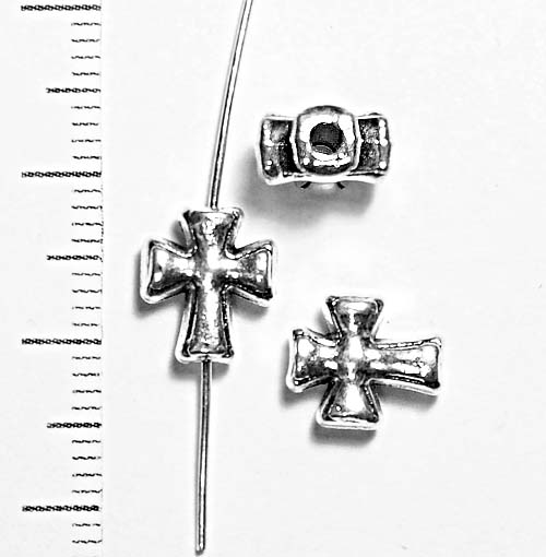 Металлическая бусина Крестик 0008384 серебряный цвет 9x8x4 мм