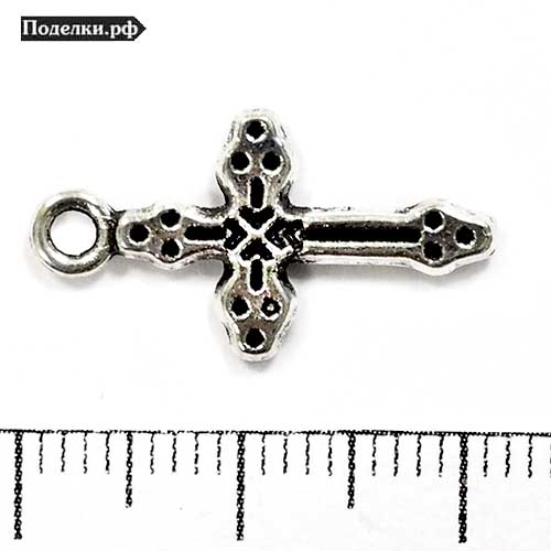 Подвеска Крестик с точками 0008404 серебряный цвет 21x11 мм